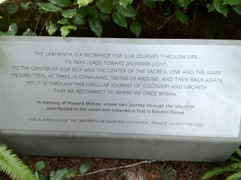 Upon finishing, I went up to the area’s entrance and read the monument that I had previously not noticed. The plaque explained the Labyrinth perfectly.